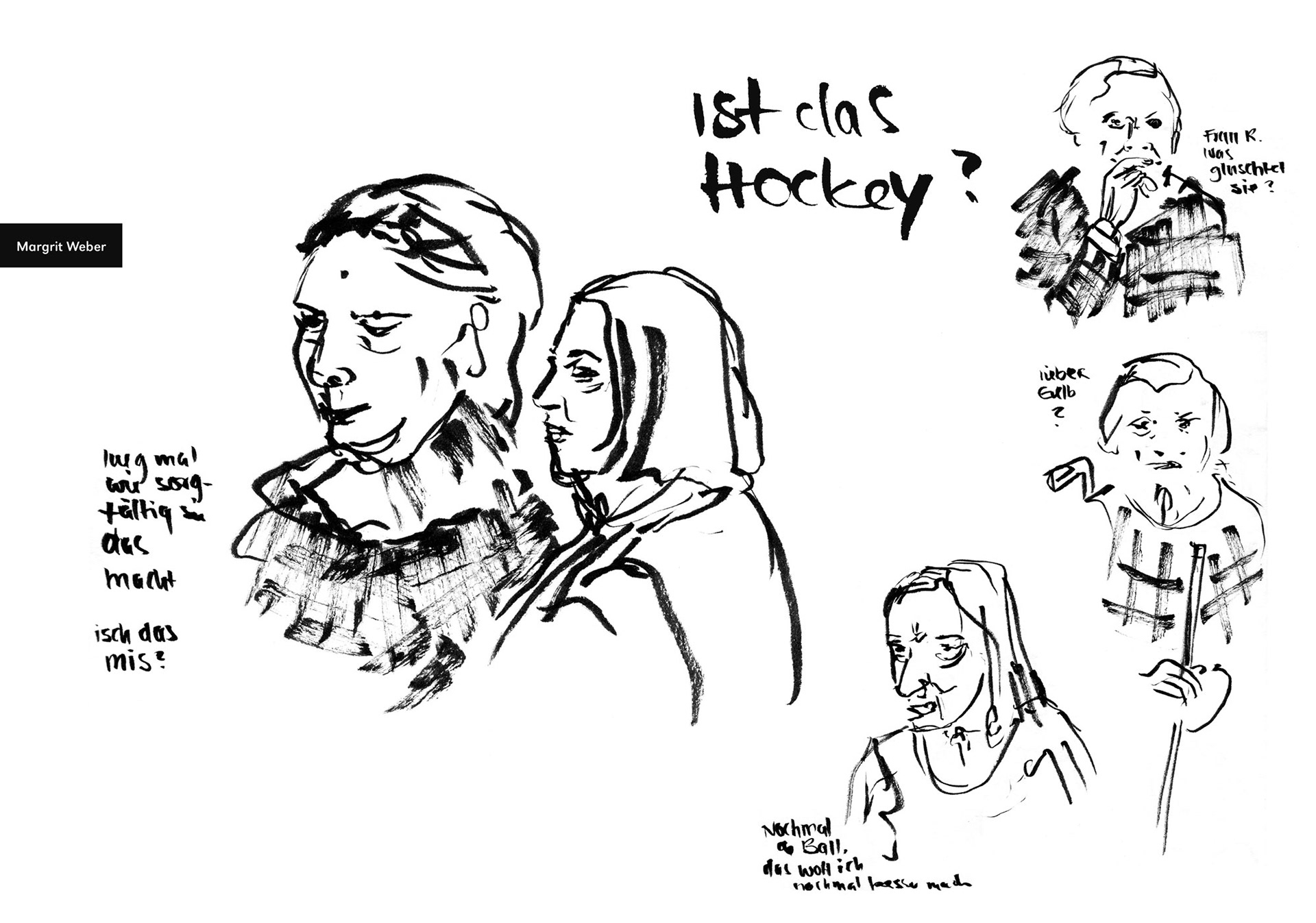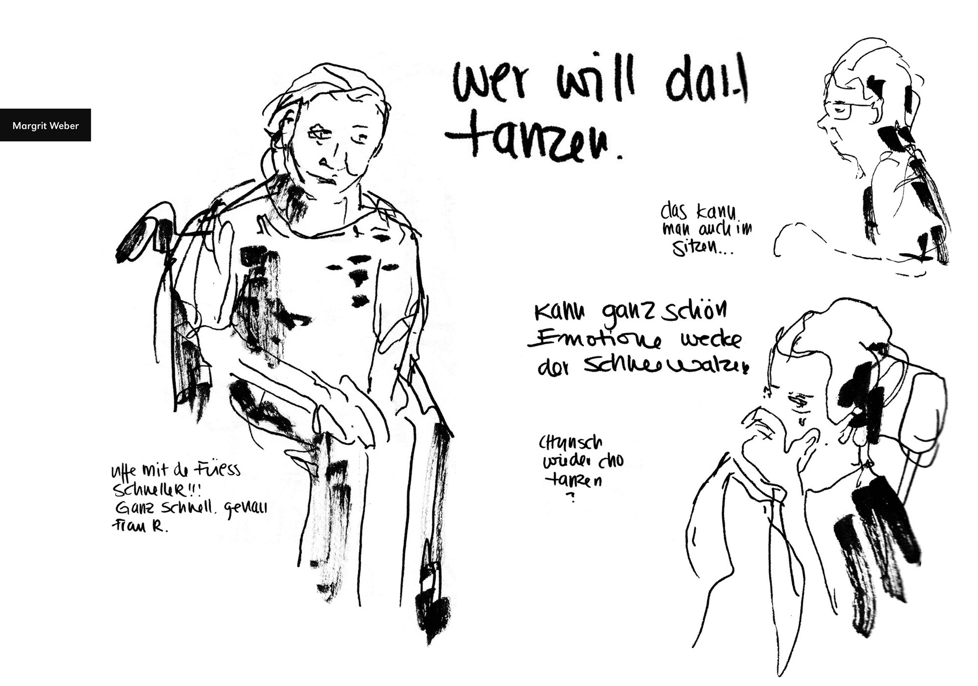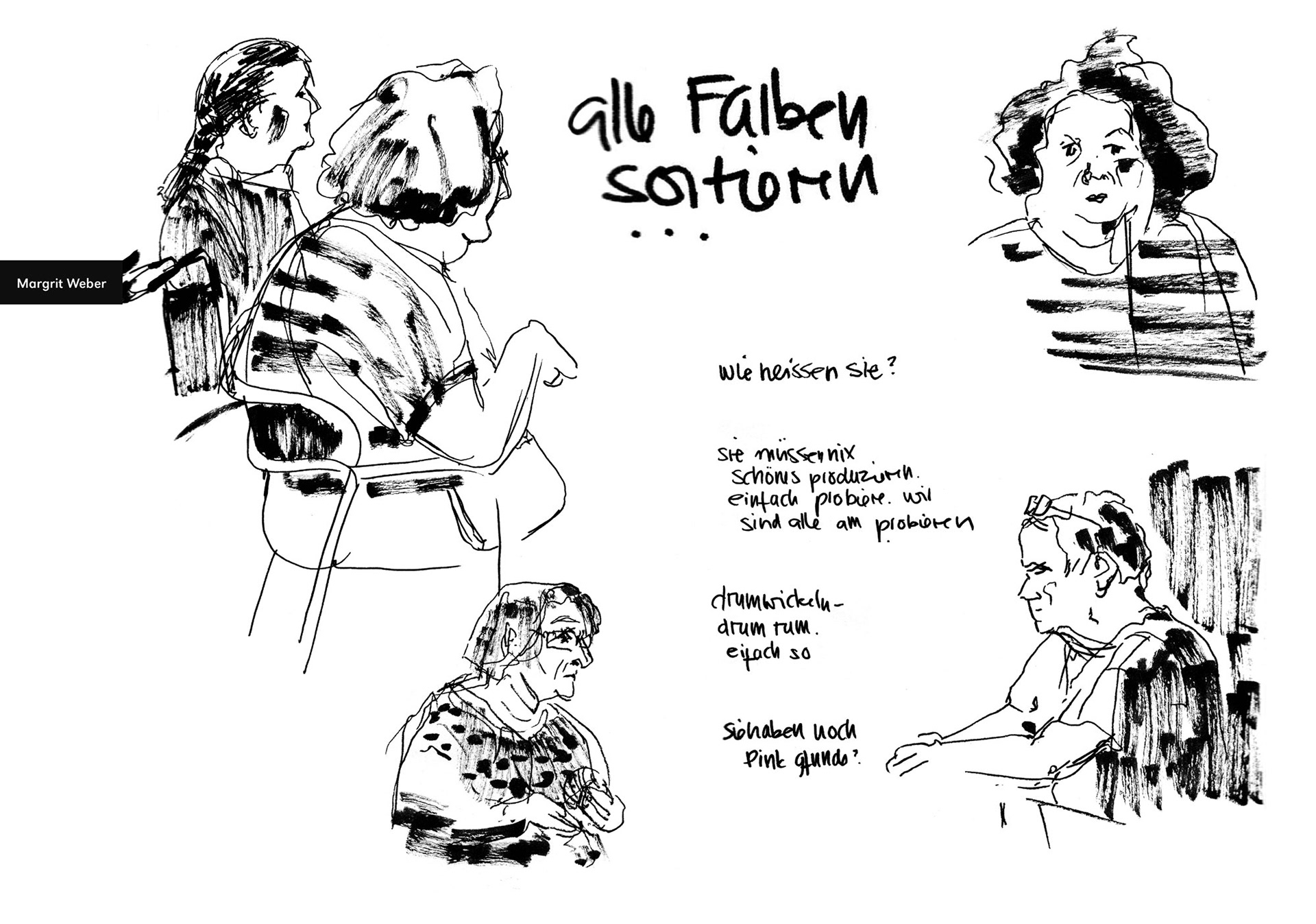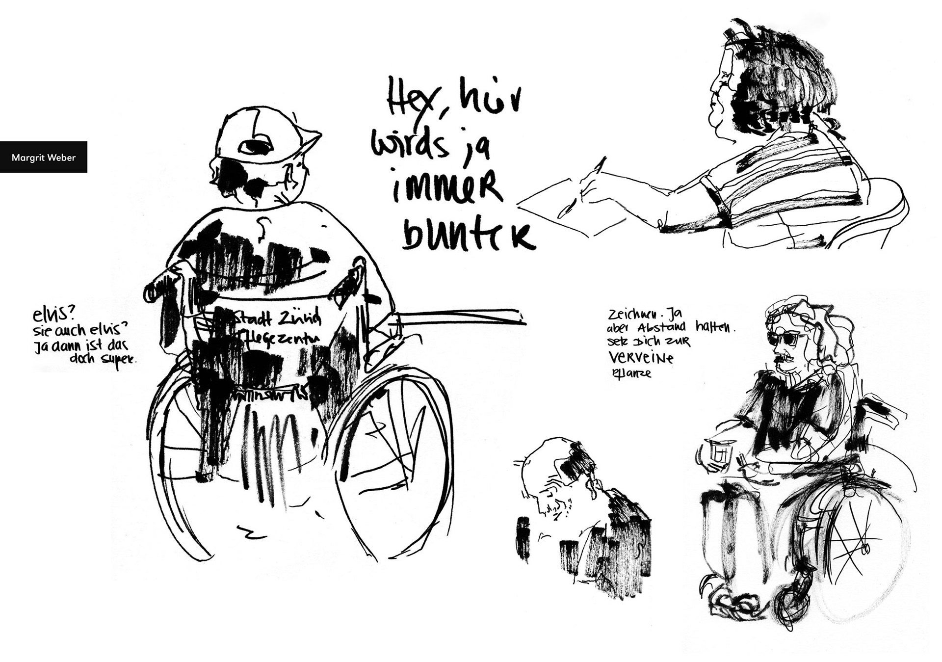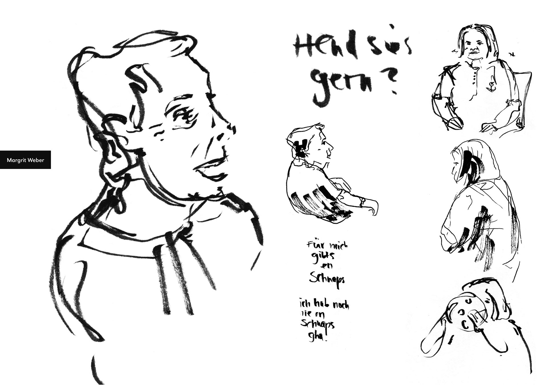 Wir durften einen ganzen Tag im Pflegeheim mit dabei sein und die Insass:innen bei verschiedensten Aktivierungstherapien skizzieren.