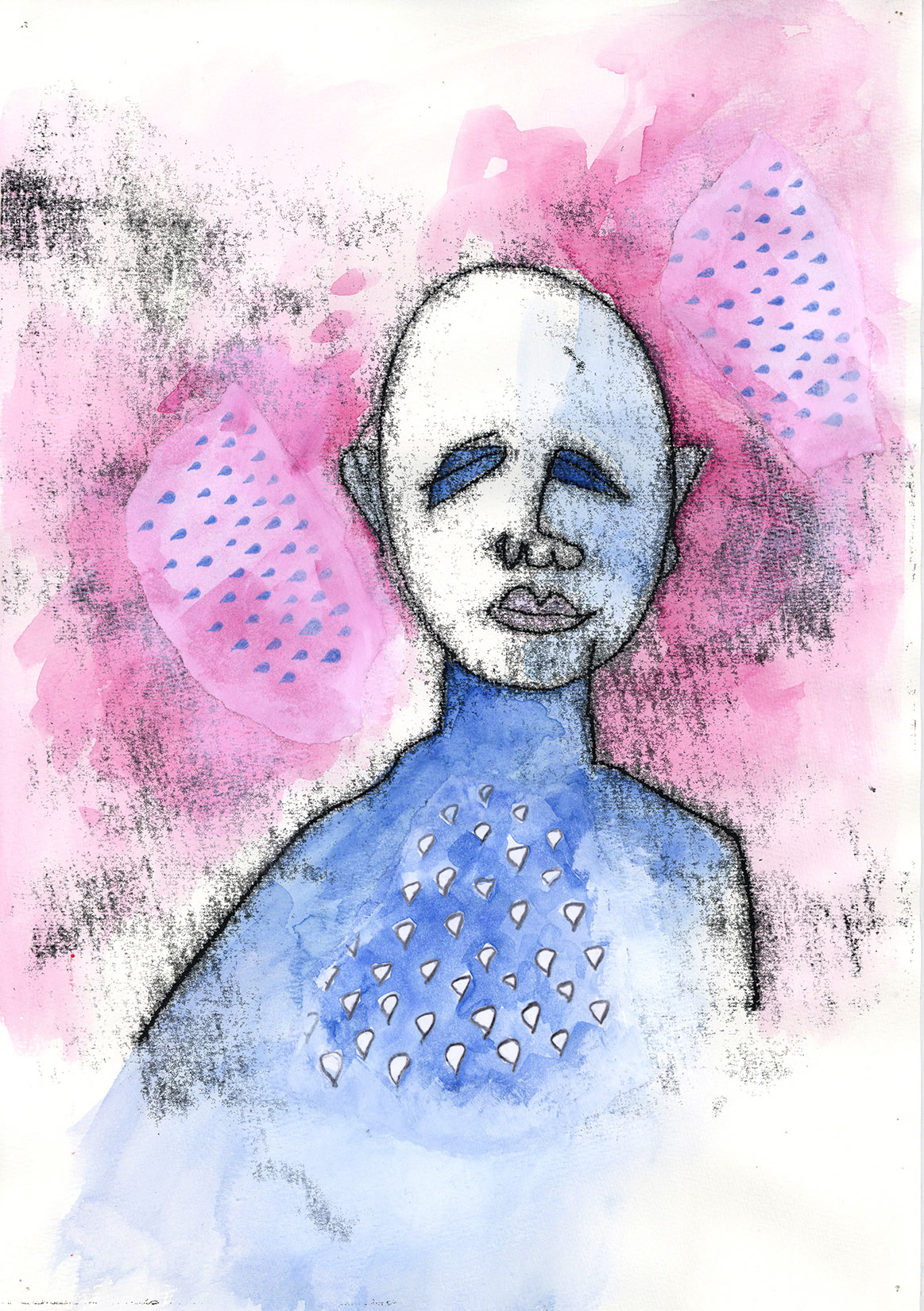Portrait-Poesie: Klangschauer visualisiert. Monotypie zeichnet mehr als nur die Linie, es kommt viel Ungeplantes mit.